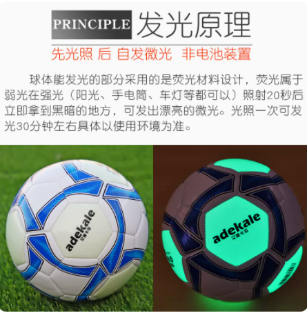 adekale荧光发光足球儿童幼儿园4号小学生青少年成人5号中考训练